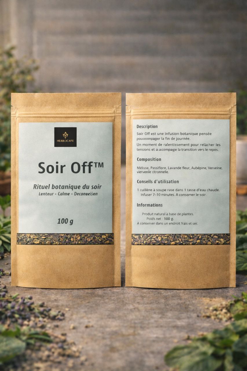 Infusion botanique relaxante conçue pour accompagner la transition vers le repos, favoriser le relùchement des tensions et le calme du soir.